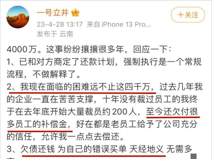 关联词李亚鹏被东说念主告状,因为欠下了四千万的债务,法院下令让他还钱。